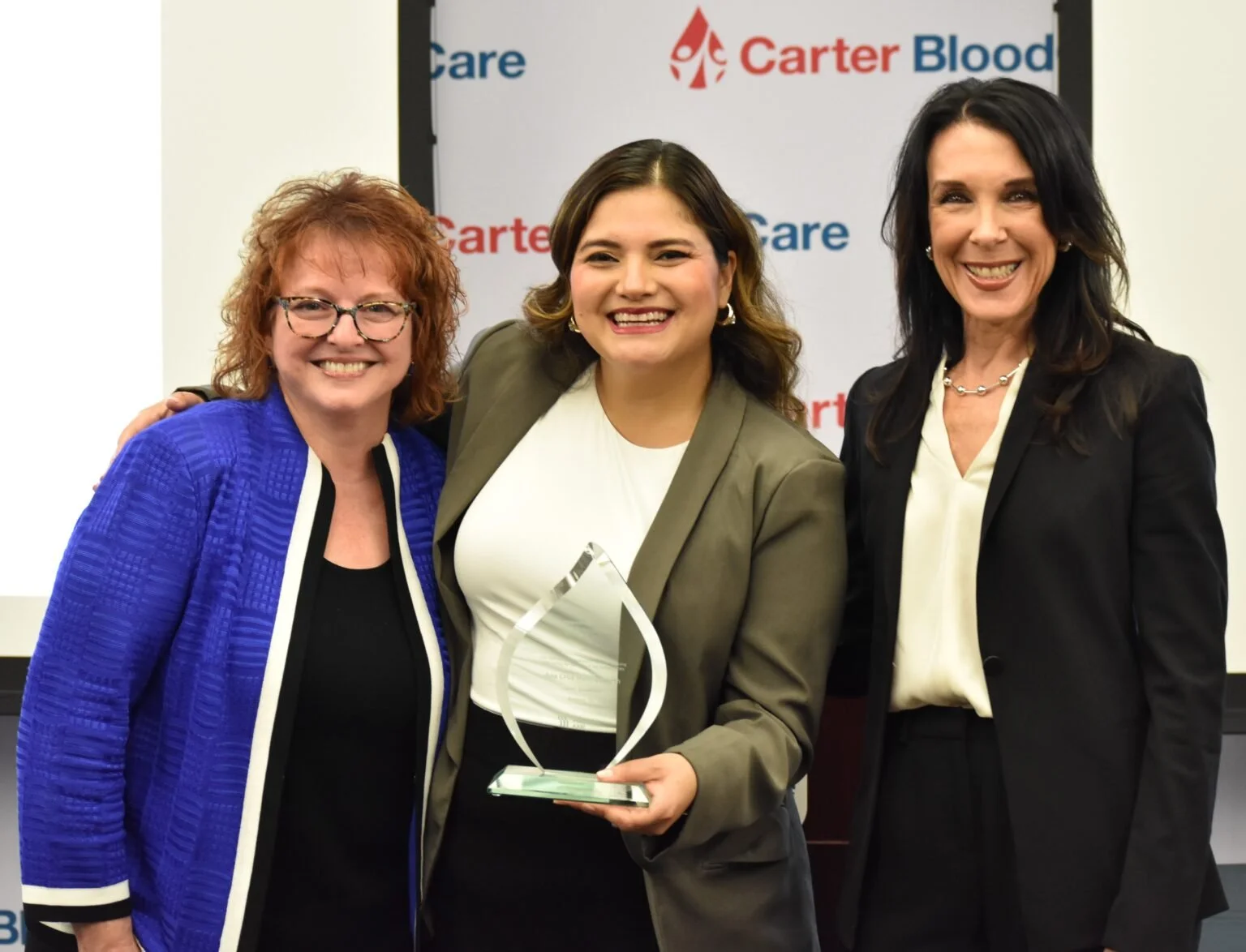El pasado 15 de noviembre, tuve el honor de ser reconocida por Fresenius Kabi y la ejecutiva Deanne Wagner durante una ceremonia de inducción y entrega de trofeos en las oficinas centrales de Carter BloodCare en Bedford, Texas. Este reconocimiento, que sólo se otorga a 12 personas cada año, me llena de orgullo y gratitud.
